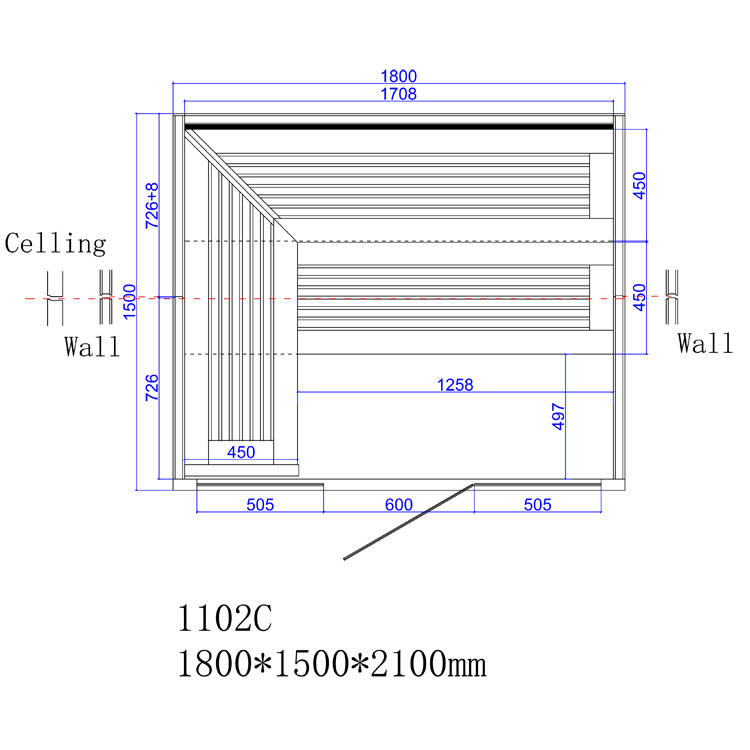 - Die Rückwand ist mit Sandstein verkleidet, wobei die Wandstärke 46mm beträgt und mit dem Sandstein sogar 66mm erreicht. Dies verleiht der Saunakabine eine robuste und elegante Ausstrahlung.