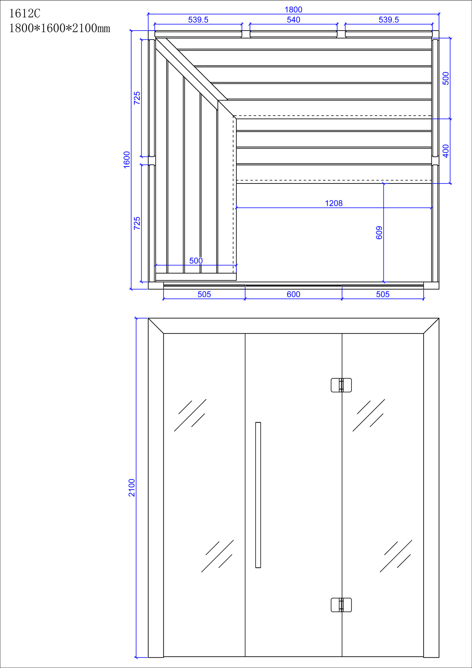 - Die Sauna besteht aus 10mm dickem ESG-Sicherheitsglas, wobei die Tür 8mm dick ist, um höchste Sicherheit zu gewährleisten.