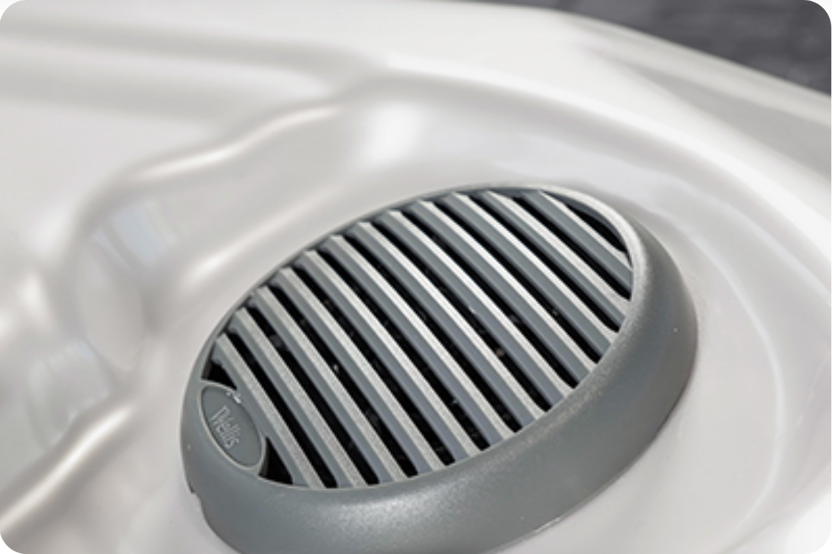 Hochwirksame Dämmplatten werden fugenlos in den Rahmen und den Boden des Whirlpools eingebaut, anstatt an der Außenverkleidung befestigt zu werden. Außerdem erhielt eine Wärmespiegelfolie um das Innere des Spa-Hauses, die die von den Pumpen erzeugte interne Wärme reflektiert und dadurch das Wasser erwärmt.